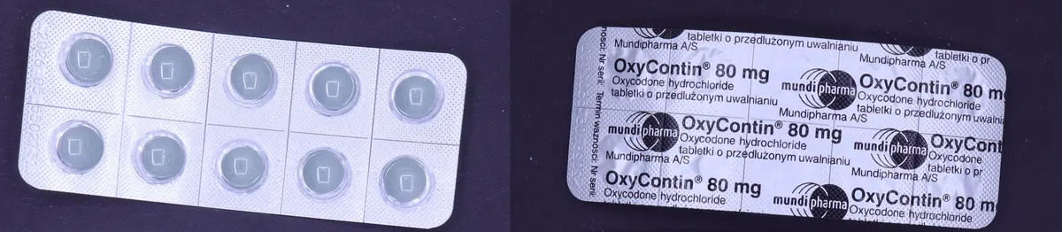 I maj 2025 utfärdade den danska hälsovårdsmyndigheten en varning om dessa falska OxyContin-blisterförpackningar som var, och fortfarande är, i omlopp.